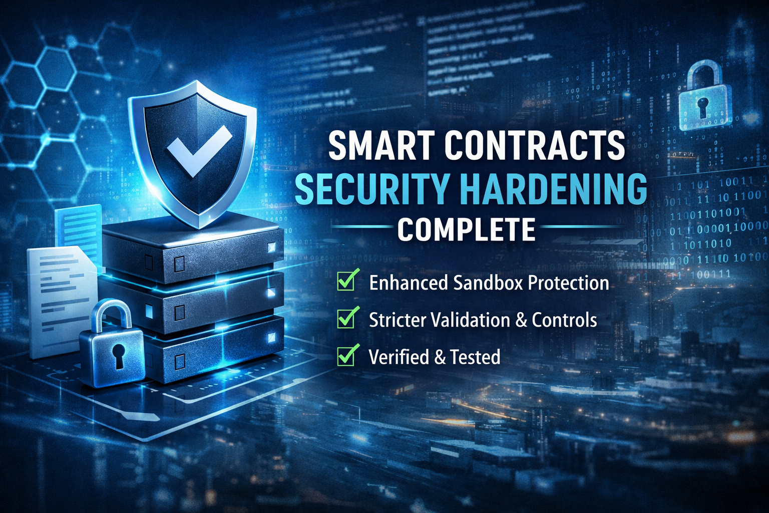 The smart contracts system is now hardened and production-ready.